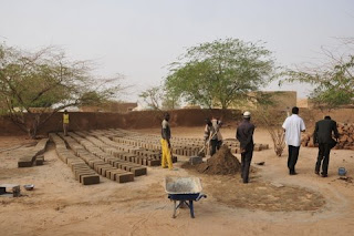 En raison de la chaleur et de la sécheresse, après fabrication les parpaings doivent être arrosés pendant une semaine.