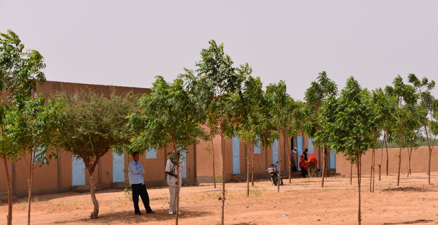 Plus de 200 arbres ont été plantés lors de la création du complexe scolaire et grâce aux soins quotidiens d’Ighlass, une grande partie de ces arbres se sont développés malgré les sécheresses et le manque d’eau qui touchent si durement Abalak.